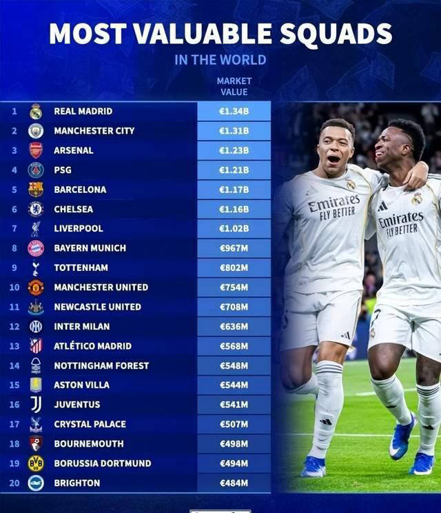 最新一期德国转会市场发布了全球顶级足球俱乐部的身价排名,皇马以134亿欧元高居榜首,其次是曼城的131亿欧元,紧随其后的是阿森纳,身价为123亿欧元。巴黎圣日耳曼和巴萨分别位列第四和第五,市值达到121亿欧元和117亿欧元。而国际米兰则排在第十二位,身价仅为63.6亿欧元,与欧洲顶尖俱乐部存在不小差距。这份天壤之别的数据反映出国米在市场价值和整体实力上的短板,也间接表达了俱乐部亟需通过引援与管理改革来缩小与豪门的差距。